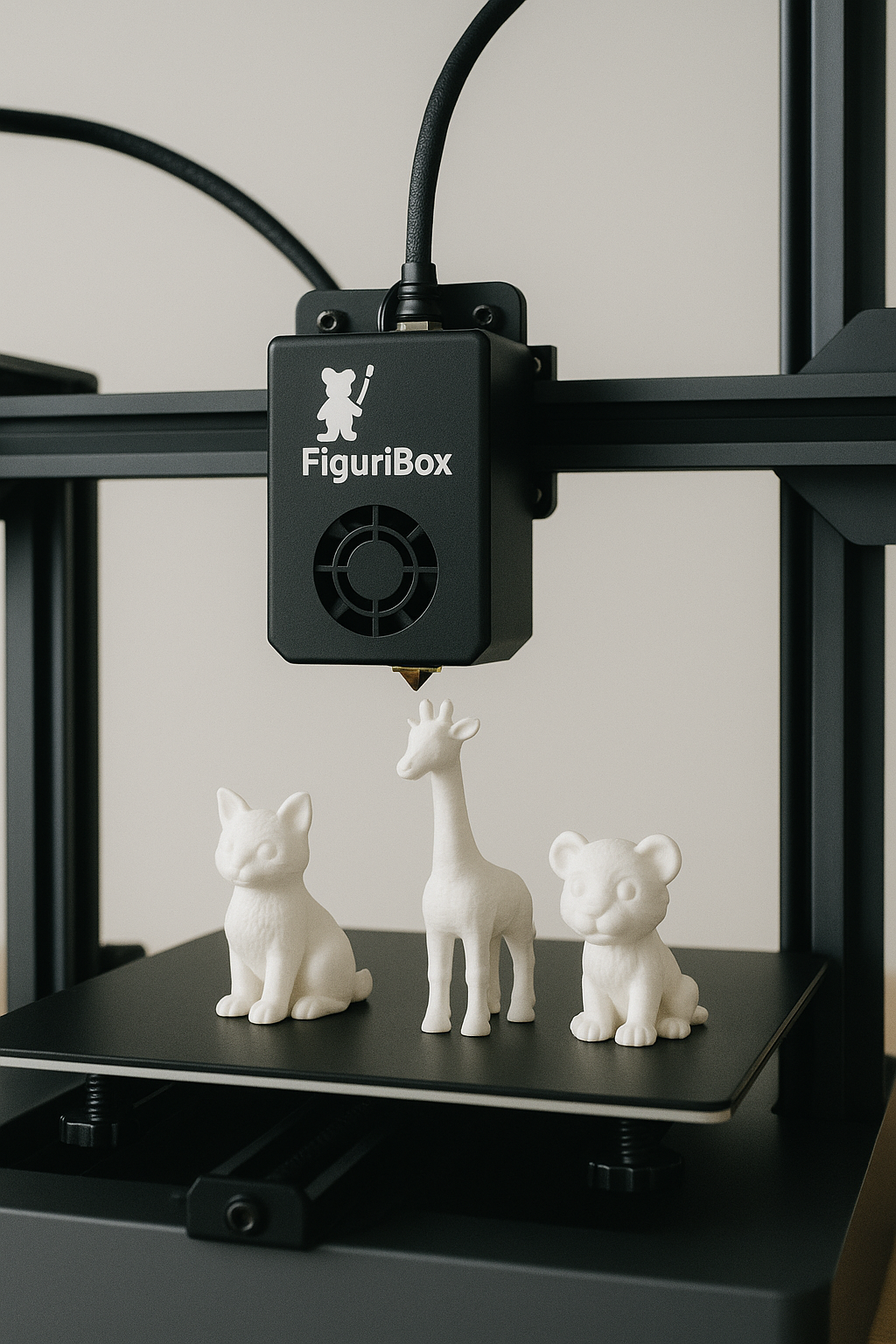 Figuricu printamo od sigurnog PLA materijala zatim je stavljamo u posebnu FiguriBox kutiju zajedno s bojama kistovima paletom i art karticom.